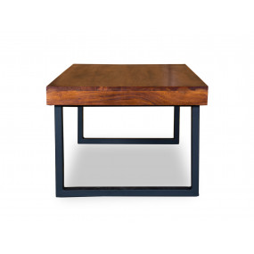 Praktická úspora místa, elegantní domácí nábytek: konferenční stolek Hastings. Stůl je ručně vyrobený z akátového dřeva a kovu. Matně lakovaná stolní deska dodává hřejivé akcenty svou výraznou kresbou dřeva a nabízí úžasné množství prostoru. Nábytek je doplněn černě lakovanými kovovými nohami. Industriální styl se spoustou kouzla a třídy.