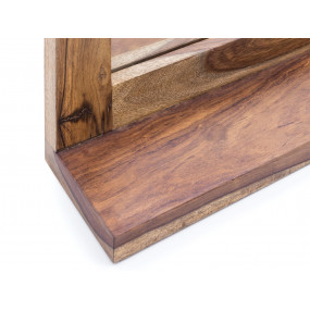 Zrcadlo Kao dává jasný akcent ve velkém formátu: vkusné a vysoce kvalitní. Zrcadlový povrch je zcela obklopen masivním dřevěným rámem. Použitý palisandr je tvrdý materiál s nápadnou kresbou. Pod matným lakovaným povrchem přichází vitální kouzlo. Úzká police (13 cm) na vaše dekorace nebo drobné každodenní náčiní doplňuje vzhled. Koupelnové zrcadlo je elegantním bytovým dekorem vyrobeným z pravého dřeva. Jednoduché & krásné.