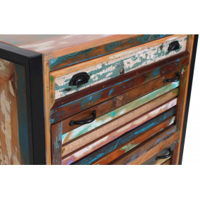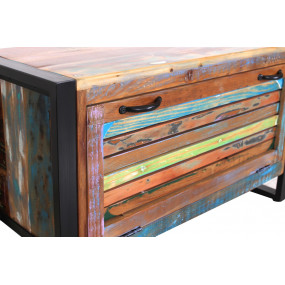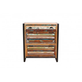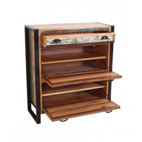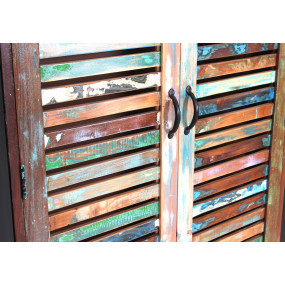 Získejte nejen pořádek ve vstupním prostoru, ale také dotek dovolené. Šatní sestava, skládající se z velké a malé skříňky na boty, 2 praktických šatních panelů, šatní skříně, kterou můžete použít buď se 3 policemi, nebo s policí a věšákem na oblečení a 3 zrcadli, zaujme svým charakterem a jedinečností. Tento styl je vyroben z barevného starého dřeva a zve vás ke snění. Kovový rám je stylovým kontrastem s barevnými lamelami. Jeho tradičně barevný nádech znamená, že tuto sadu prken lze také snadno integrovat do moderního prostředí.